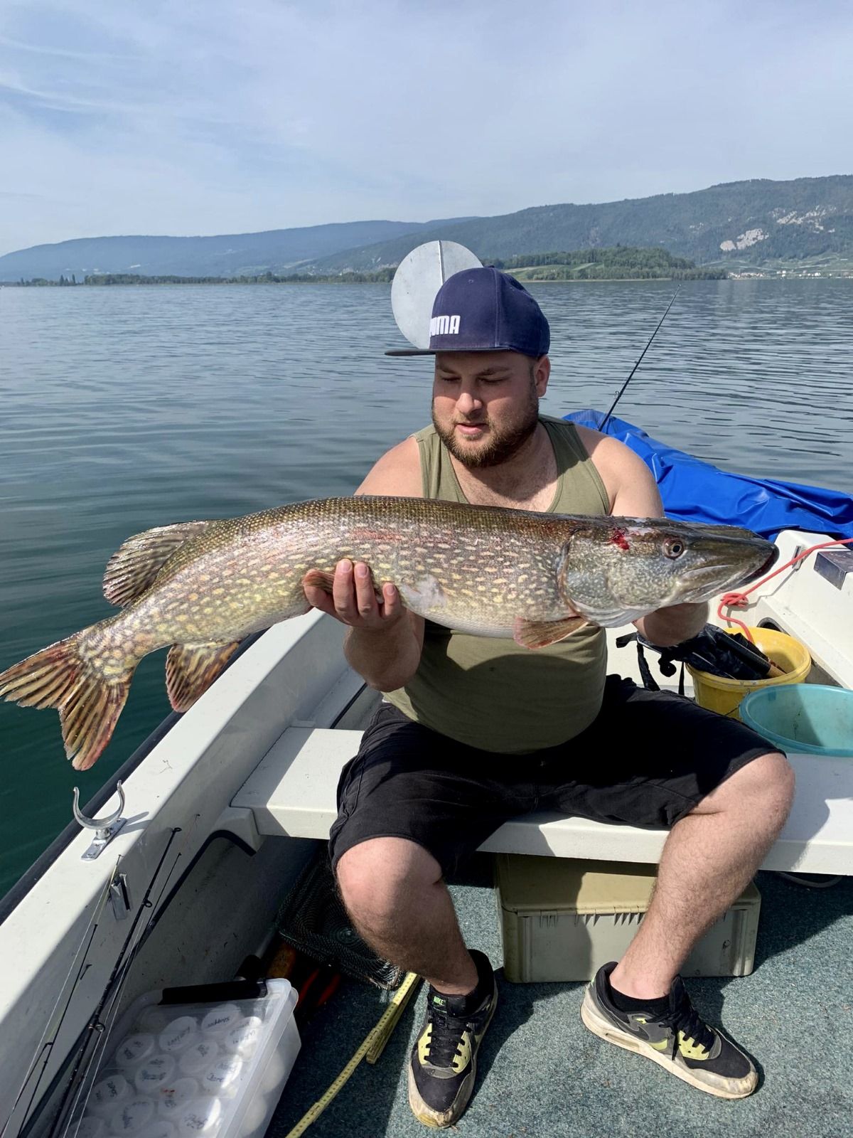 Unverhofft kommt Oft. Mänu mit seiner 50er Schleie beim Egli jiggen